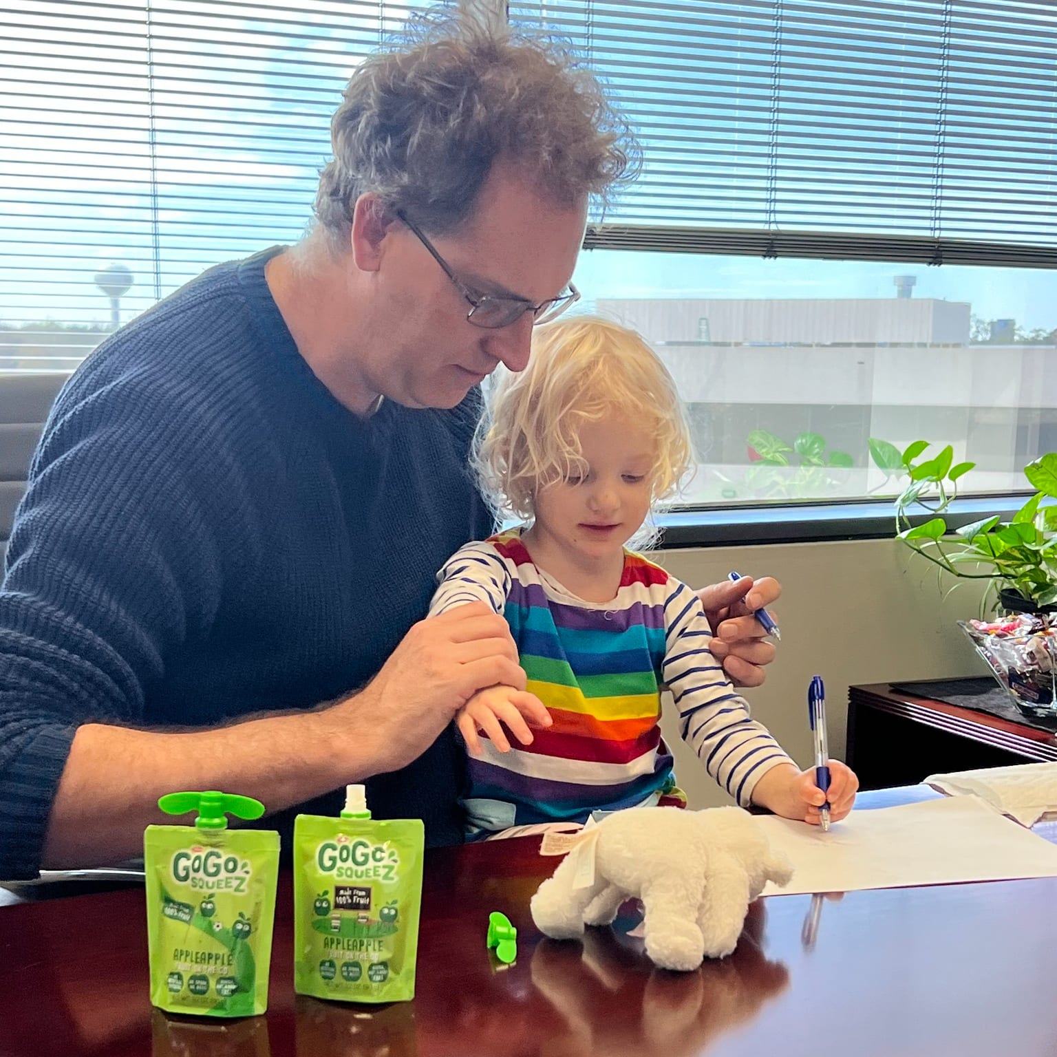 Closing was a family affair with the youngest “helping” sign the documents and the older one writing a special note to their new home.