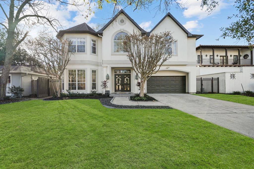 Pristine Parisian inspired home tucked into one of Bellaire’s finest subdivisions. Two story grand entry showcasing the rod iron and hardwood staircase open to the generous sized formal dining and sitting room. Butler’s pantry and large walk-in pantry in between kitchen and dining. Spacious kitchen hosts a plethora of storage, gas cooktop in island, built-in fridge, double ovens, and more! Bright & sunny kitchen overlooks the livingroom with fireplace and custom built-ins, wall of windows and French doors that overlook the pool. Handsome study down with full bath. 2nd floor hosts all bedrooms and laundry room. Primary room is oversized with en-suite bathroom and huge closet. One of Bellaire’s few homes with a huge 3rd floor gameroom plus full bath! Recent refresh includes exterior paint, interior paint, new front porch retile, all hardwood floors refinished, staircase upgrade to rod iron, new carpet, light fixtures, repainted pool decking. Must see to appreciate this beautiful home.